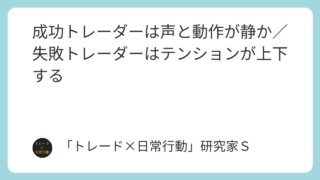 成功トレーダーは声と動作が静かで、失敗トレーダーはテンションが上下します。日常の振る舞いがそのままトレード判断に影響する理由と、今日からできる整え方を解説します。