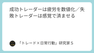 脳の使い方 成功トレーダーは疲労を数値化/失敗トレーダーは感覚で済ませる トレードが不安定になる原因は疲労の見落としです。成功トレーダーは疲労を数値化し、感覚に頼りません。判断力を守るための具体的な管理方法を解説します。 2026.04.08 脳の使い方