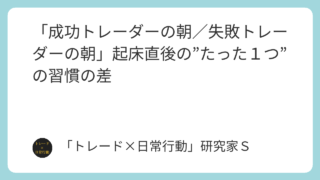 生活習慣 「成功トレーダーの朝/失敗トレーダーの朝」起床直後の”たった1つ”の習慣の差 成功するトレーダーは朝の“たった1つ”の習慣が違う。起床直後の行動が判断力・メンタル・勝率にどう影響するのかを解説します。 2025.12.10 生活習慣