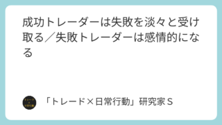 精神状態・メンタル管理 成功トレーダーは失敗を淡々と受け取る/失敗トレーダーは感情的になる 成功トレーダーは失敗を淡々と受け取り、失敗トレーダーは感情的になります。失敗への反応が判断を左右する理由と、今日からできる具体的な改善方法を解説します。 2026.02.06 精神状態・メンタル管理