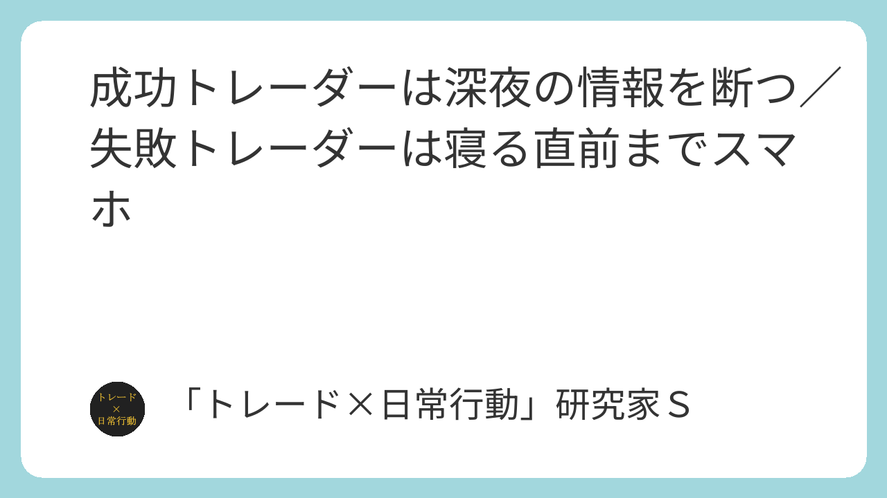 一方で、安定して勝つトレーダーほど「寝る前の情報摂取」を徹底的に避けています。