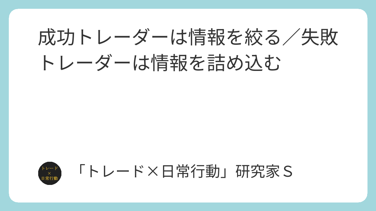 成功トレーダーは、あえて情報を絞る選択をしています。