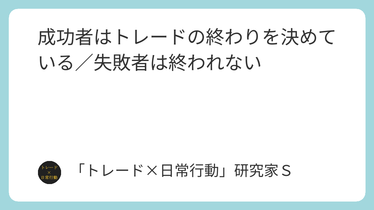 成功しているトレーダーほど、「トレードの終わり」を明確に決めている。