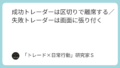 基準・仕組みの具体的な作り方は、成功トレーダーは判断基準を持つ/失敗トレーダーは意見を集めるをご覧ください。