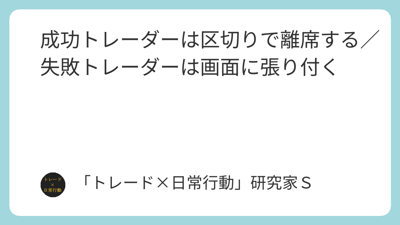 成功しているトレーダーほど、「区切りで離席する」