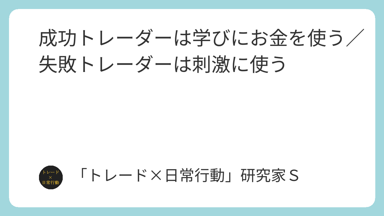成功トレーダーは学びにお金を使う