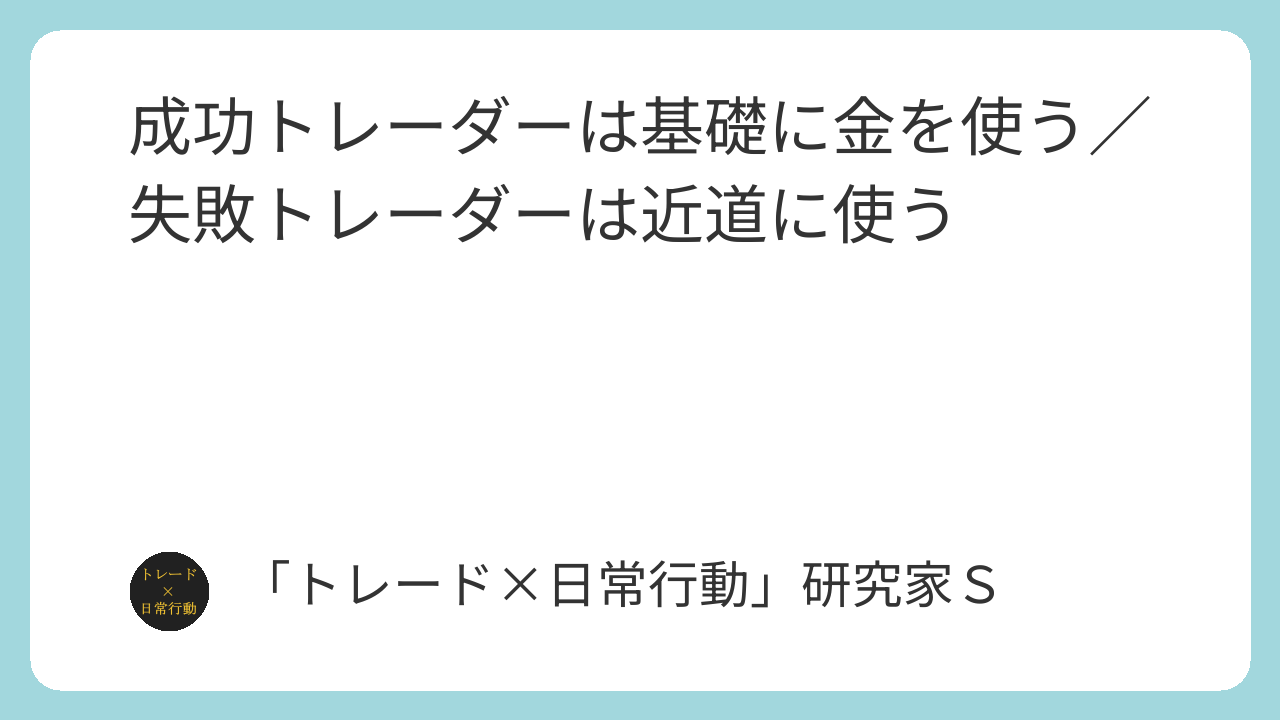 成功トレーダーは「基礎」に金を使う