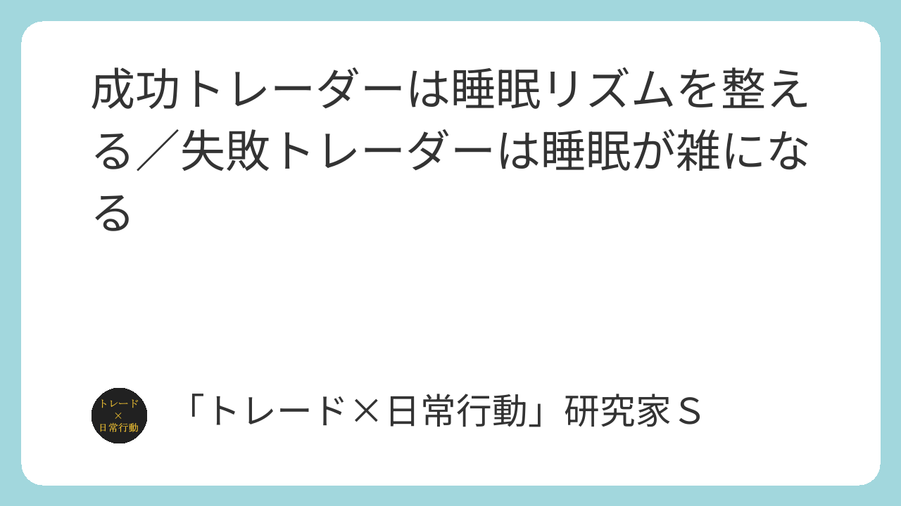 成功するトレーダーは“睡眠リズムを整える”ことで安定を作る