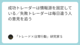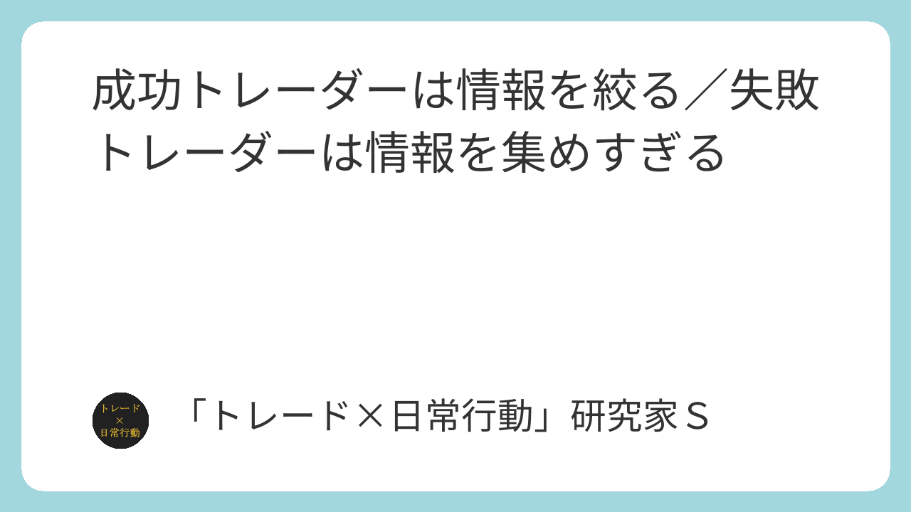 成功するトレーダーの共通点は、情報を“選ぶ”ことにあります。